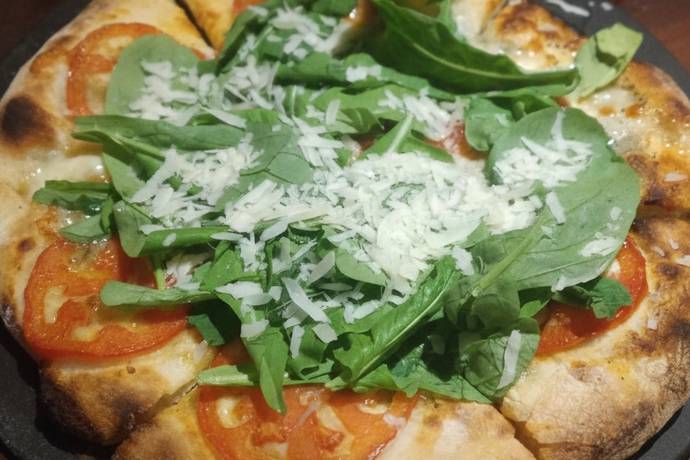 molho de tomate, tomate fatiado, bocconcini di mozzarella, manjericão, ricota fresca e ricota defumada. Pizza pequena: R$105,00