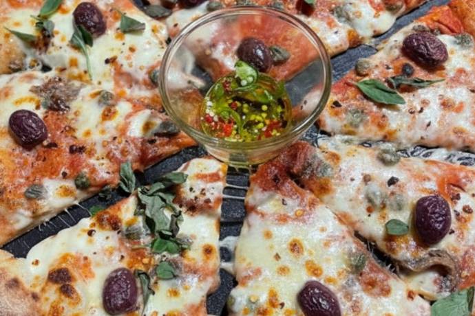 Molho, mozzarella, alho, anchovas, alcaparras, azeitonas, pimenta e manjericão. Pequena: R$94,00