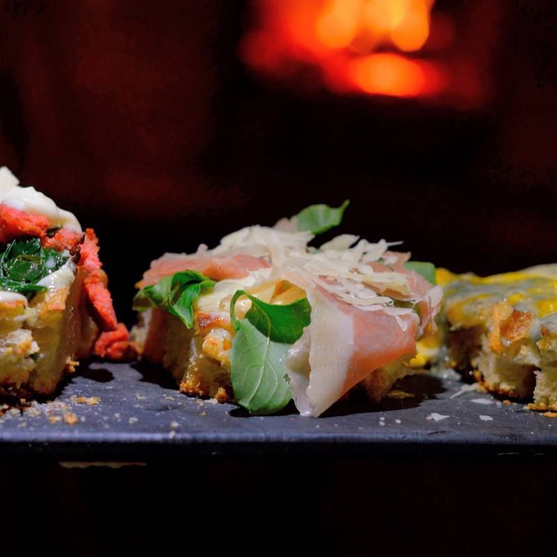3 fatias de pão caseiro torrado com ingredientes surpresa, uma experiência simples mas encantadora.