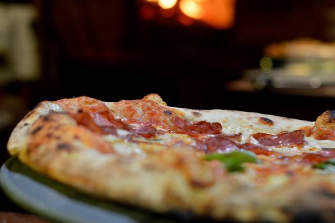Molho de tomate, mozzarella e calabresa.Pequena 6 fatias: R$86,00
