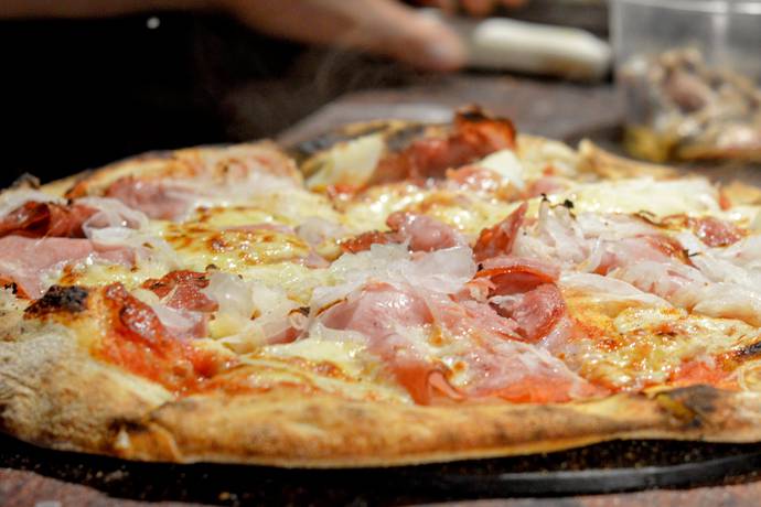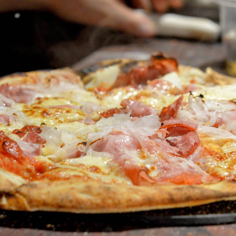 Molho, Mozzarella, presunto, ovos, calabresa e cebola.Pequena: R$89,00
